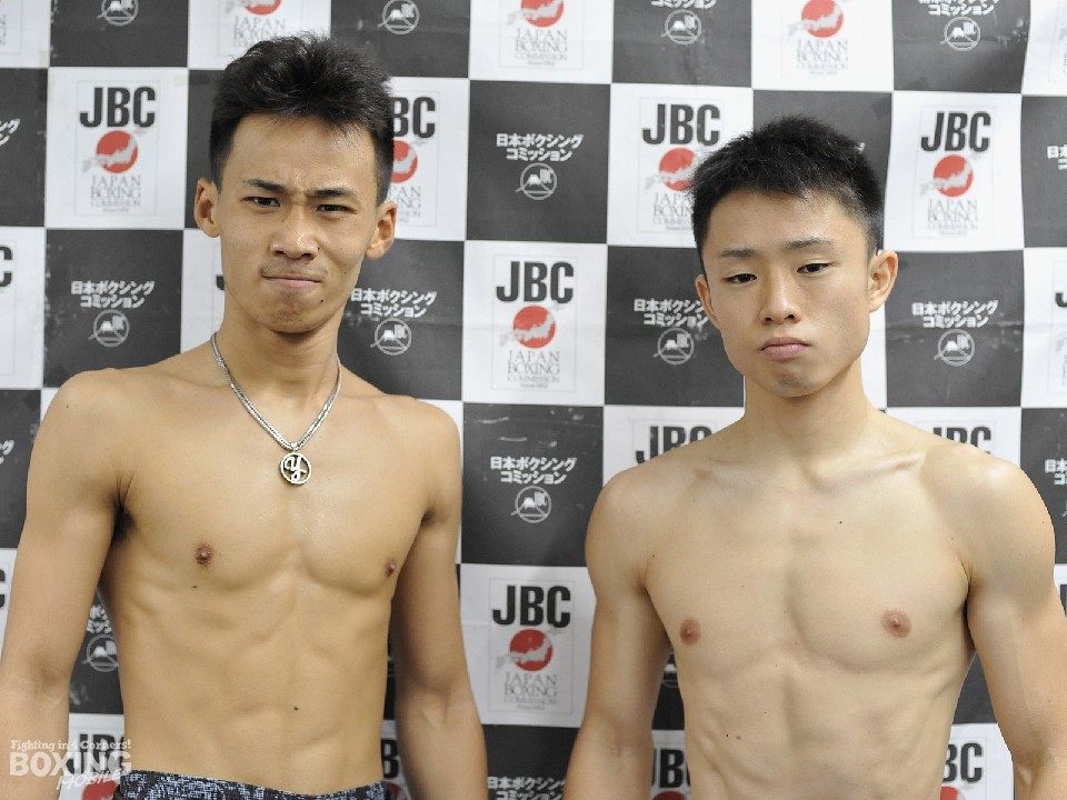 明日10日、後楽園ホールで開催される「DANGAN217」のアンダーカードでは、若きファイターたちが争うふたつの日本ユース王座決定戦がセットされている。その前日計量が都内の日本ボクシングコミッション本部事務局で行われ、ライト級の利川聖隆(22=横浜光)と小田翔夢(20=白井・具志堅)、ミニマム級の井上夕雅(19=尼崎亀谷)と石澤開(21=M.T)はそれぞれ一発でクリアし、初のタイトル戦に向け意気込みを語った。