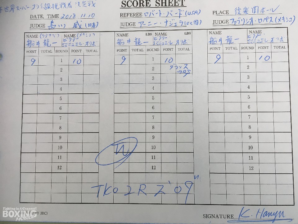 一方、船井の強打を浴びてキャンバスに沈んだオリボは、「コンディションは悪くなかった。12ラウンド戦うつもりだったが不意の右をもらって効いてしまった。初回はコントロール出来ていたと思うが、相手の方が良いパンチだった」と船井の実力を認めた。