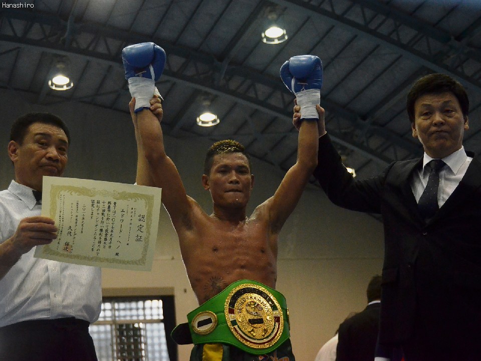 ヘノは昨年9月の決定戦で荻堂盛太(平仲BS)に7回TKO勝ちし同王座を獲得。今年2月にメルリト・サビーリョ(比)を、8月にはジェシー・エスピナス(比)を判定で退け2度の防衛に成功した。戦績は18戦13勝(5KO)5分。