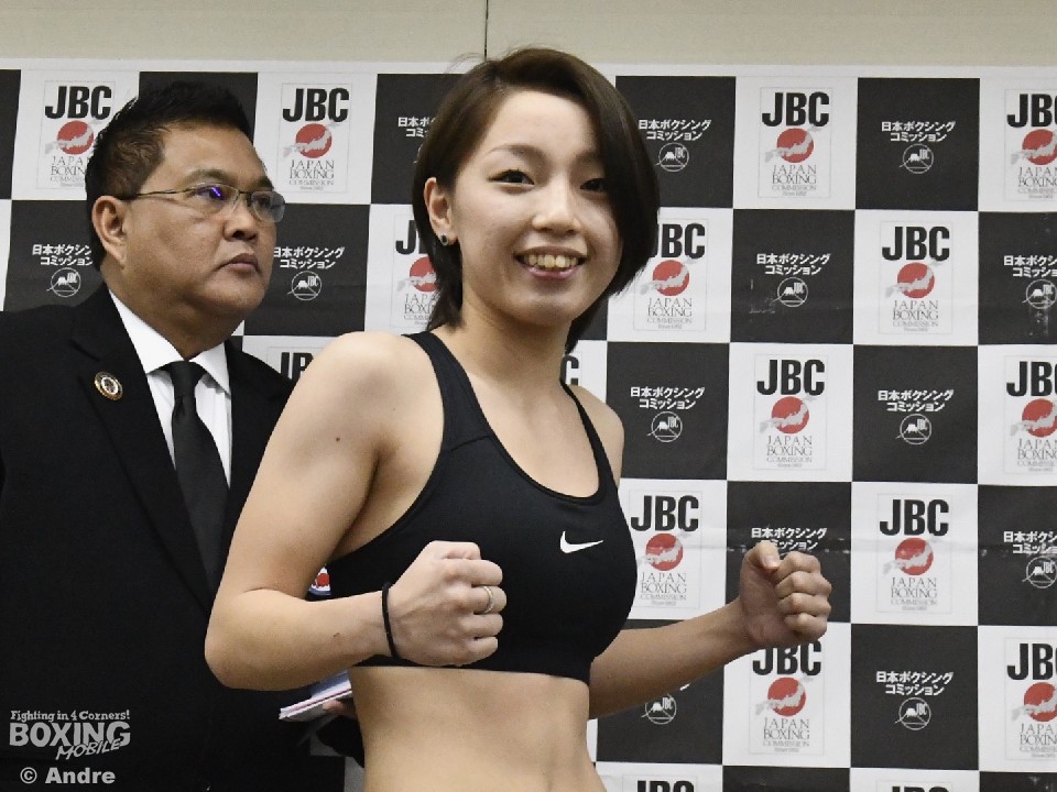 WBO女子アジアパシフィック・ミニフライ級王座決定戦で初のタイトルに挑む佐伯霞(真正)は46.9kgの700gアンダーでパス。「明日はタイトル獲ります」と笑顔を見せた。対して、ワッサナー・カムディー(タイ)は46.6kgの1.1kgアンダーでパスすると「ベルトは私がタイに持ち帰る」と拳を握った。