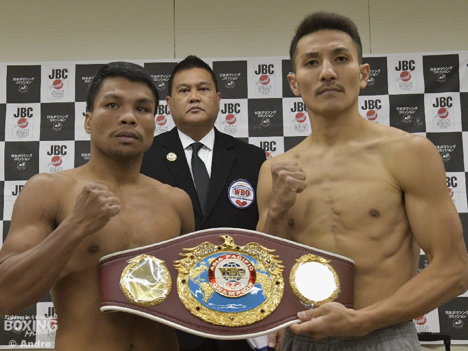 WBOアジアパシフィック・ライトフライ級王者の小西伶弥(真正)と挑戦者のリチャード・ロサレス(比)、WBOアジアパシフィック・スーパーフェザー級王座決定戦で7年ぶりのタイトルを狙う仲村正男(渥美)と対戦相手のカルロ・マガレ(比)が30日、試合の行われるエディオンアリーナ大阪の特設会場で前日計量に臨んだ。