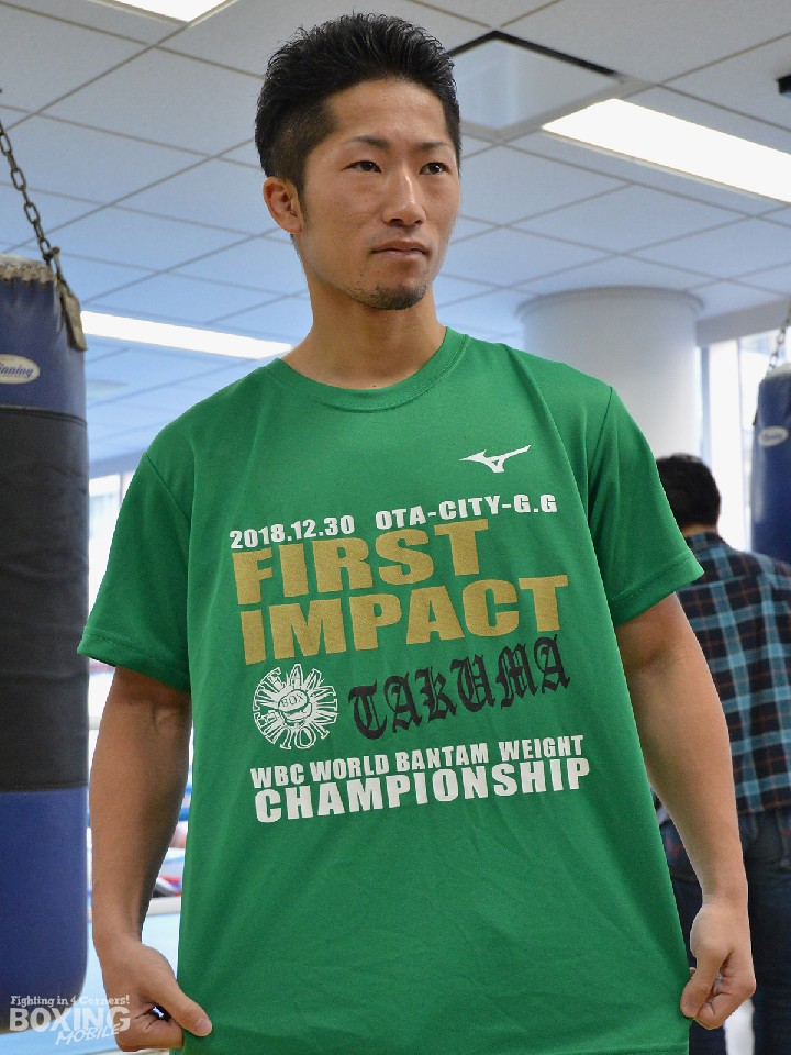 このイベントは「FUJI BOXING2018」として当日、夜7時からフジテレビ系列で生中継され、アメリカでの放送も決定。兄がはたした海外進出も視野に入れる井上は、「向こうの人にも注目される試合にしたい」と目を輝かせ、緑のオリジナルTシャツにも書かれた"FIRST IMPACT"を頭に描いた。