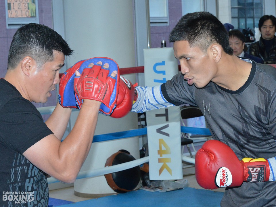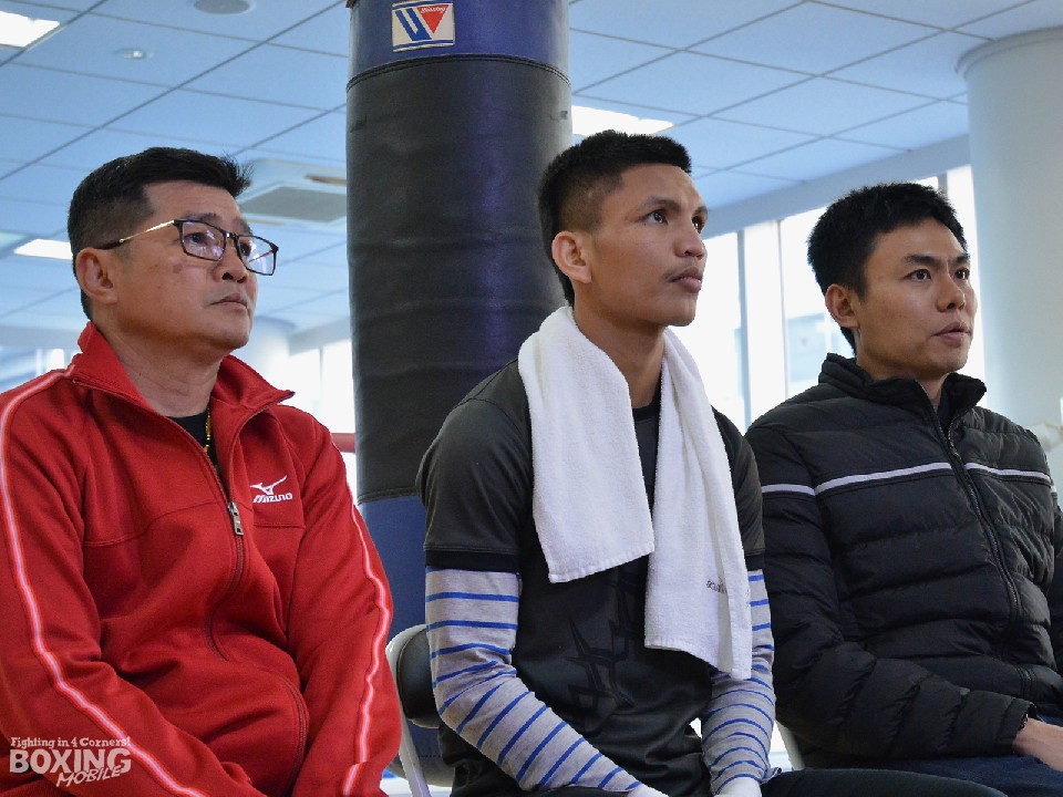 昨日来日した48戦全勝(33KO)を誇るサウスポーは疲れた様子もなく、練習前の会見で「愛すべき国で初の世界戦ができることが嬉しい」と笑顔を見せ、「緊張もなくリラックスしている。体重はリミットまであと3ポンド(1.36kg)。体調も問題ない」とコンディションの良さをアピール。キャリアは12歳でムエタイを始め、17歳でボクシングに転向したと明かした。