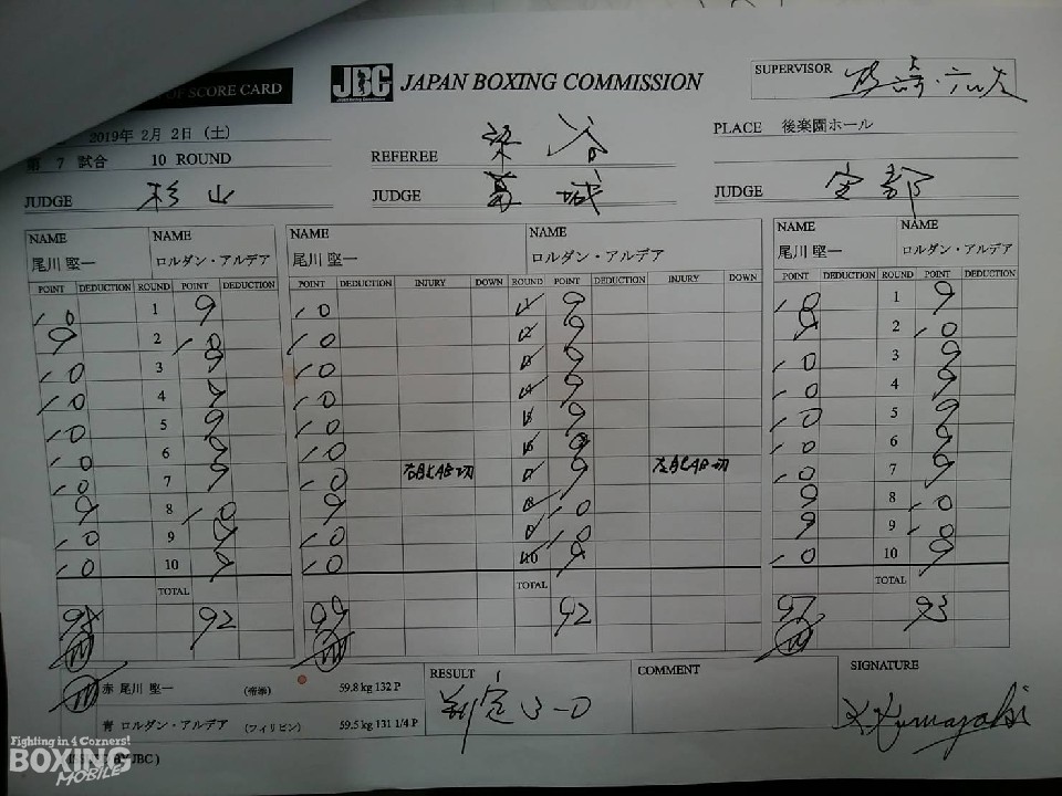 一方、敗れたアルデアは判定に納得がいかず、「効かされたパンチはない。ダメージはバッティングだけ。自分では勝っていたと思うのでもう一度尾川とやりたい」と悔しさをにじませた。