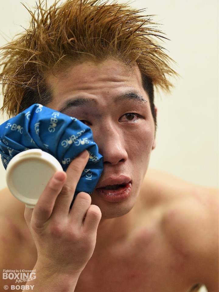 多くの報道陣に囲まれて会見に応じた勅使河原は、試合1ヶ月前に行ったWBA世界バンタム級王者の井上尚弥(大橋)とのスパーリングでスランプに陥ったことを告白。さらに初回に右拳を痛めたことを明かした。苦笑いを浮かべた勅使河原は、「相手のパンチをもらうたびに悔しくて惨めな気持ちになった。右拳の握りが弱くなり、普段どれだけ右に頼っているのかと感じた。今日の試合は勉強になった」と反省を口にした。