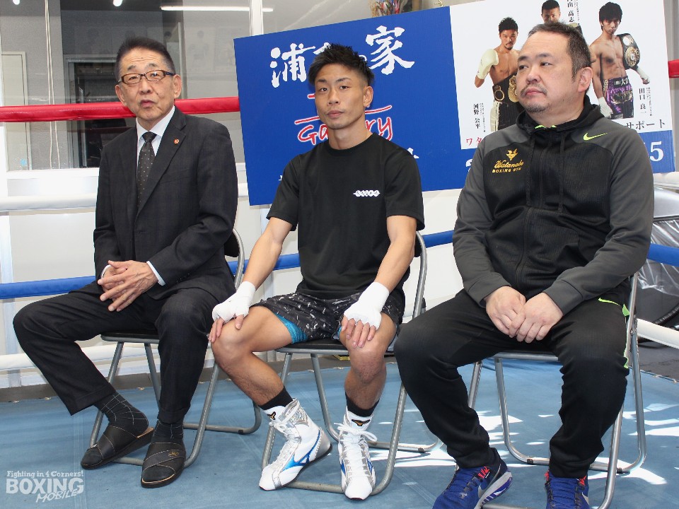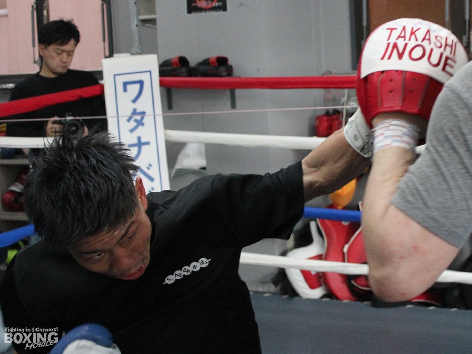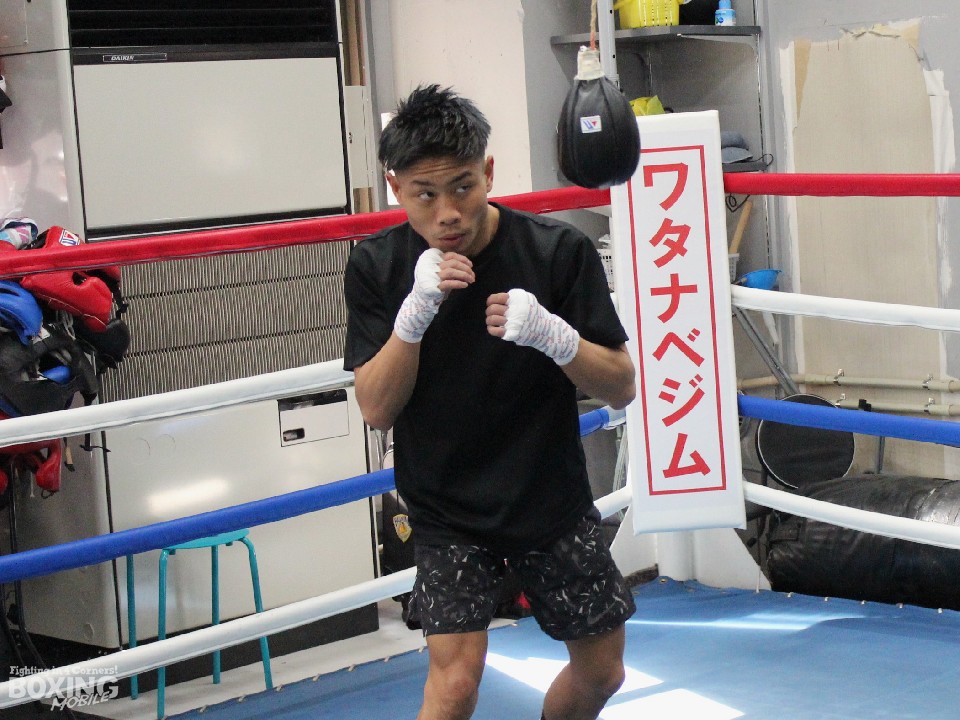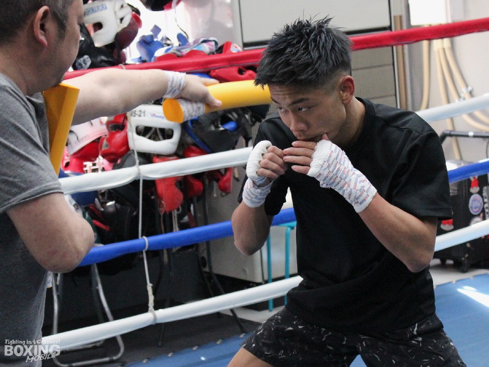 会見後には井上孝志トレーナーが持つスティックにバックステップ、ブロックを駆使し冷静に反応。打ち終わりに頭を振るなど動きを確認した。その後のサンドバッグ打ちでは上下に打ち分け、特に右フック、左スウィングに威力を感じさせた。
