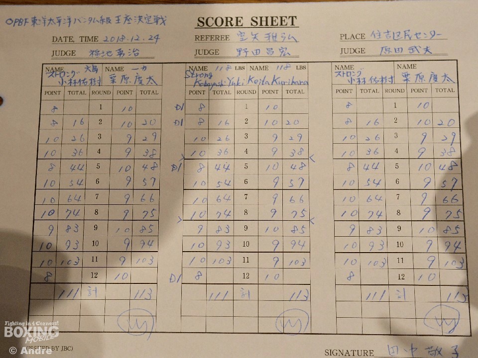 決定戦はストロング小林(六島)と栗原の間で12月24日に大阪・住吉区民センターで行われたが、5回終了時のインターバルが1分16秒、6回が4分、6回終了時のインターバルが2分2秒と異例のミスが連発。試合は4度のダウンを奪った栗原が111-113,111-113,111-113の判定0-3で勝利したが、試合後に計測ミスが大きな問題となり、JBC選手権委員会は「ノーコンテスト(無効試合)の上で栗原に救済措置を図るべき」といった意見を含め審議を続けていた。