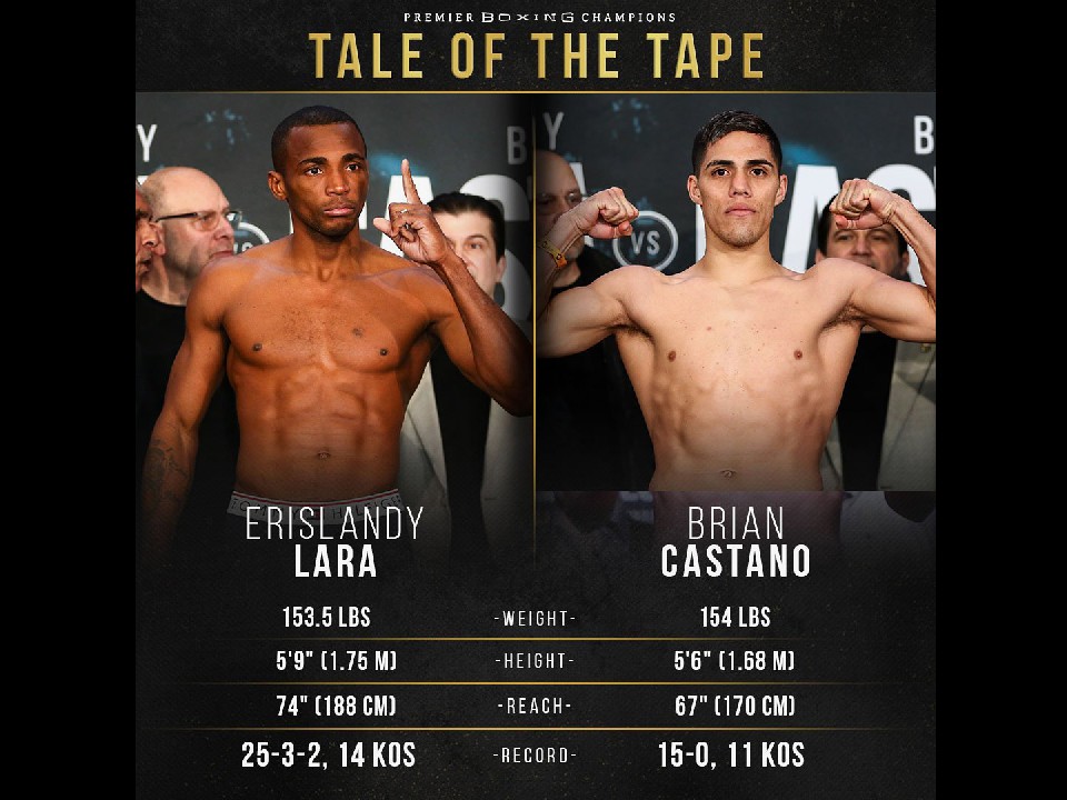 米国・ニューヨーク州ブルックリンのバークレイズ・センターで3月2日(日本時間3日)開催される、WBA(世界ボクシング協会)スーパーウェルター級タイトルマッチ。王者ブライアン・カルロス・カスターノ(アルゼンチン)vs元WBA世界スーパーウェルター級スーパー王者エリスランディ・ララ(キューバ)の前日計量が1日(日本時間2日)に同会場で行われた。アンダーカードでは元WBA世界ヘビー級暫定王者のルイス・オルティス(キューバ)とWBO同級12位のクリスティアン・ハマー(ドイツ)と対戦が組まれている。