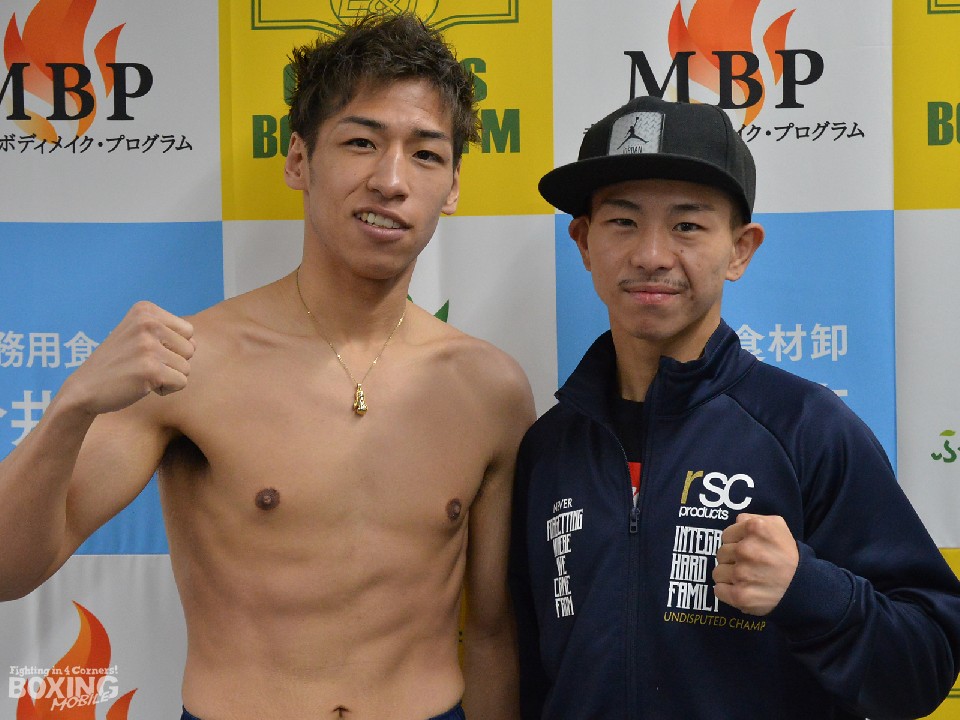 ミニマム級リミットの47.6kgを100g下回る47.5kgでパスした小浦は、初の地元開催に「これまでなかなか応援に来られなかった人も見に来てくれるので楽しみ」と笑顔。挑戦者はこれまでKO負けのない好戦的なダンテだが「自分のボクシングをすれば問題はない。2月のフィリピン合宿で精神的にも強くなった」と自信を示し、「世界に行けと言ってもらえるようしっかり倒したい。来たチャンスは何でも掴む。そこからがスタートライン」と、この先の世界を見据えた。