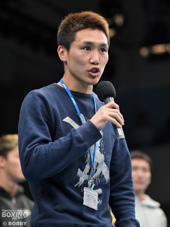 代表してマイクを持った小國は、31戦22勝(14KO)9敗の戦績を誇るIBF世界バンタム級5位スックプラサード・ポンピタック(タイ)を迎えての世界前哨戦に向け「しっかりと勝って次に繋げる」と決意した。