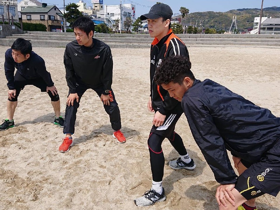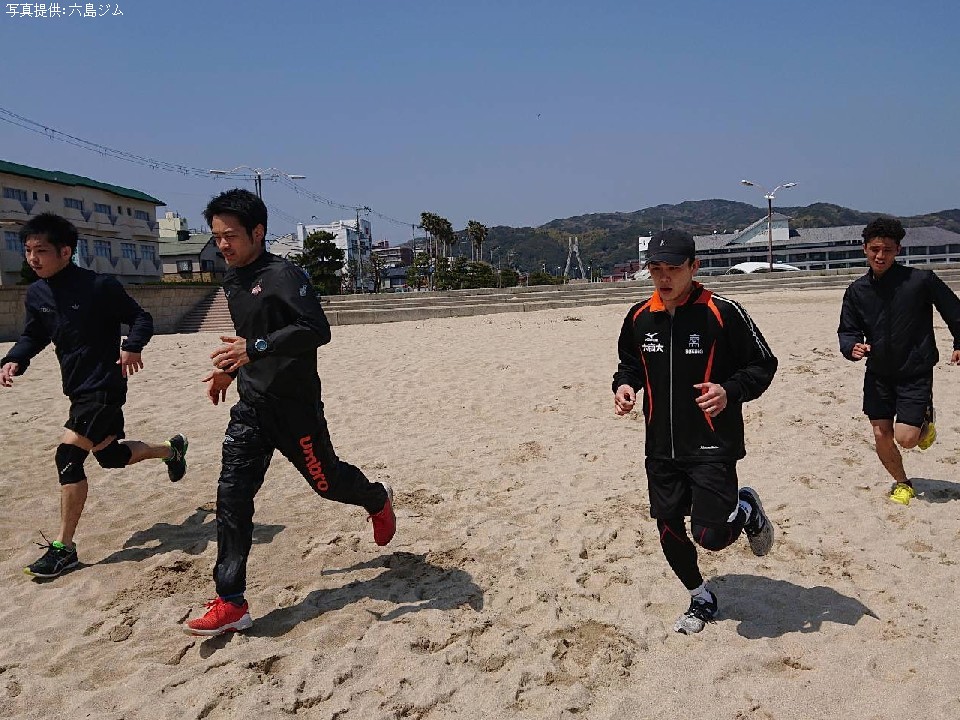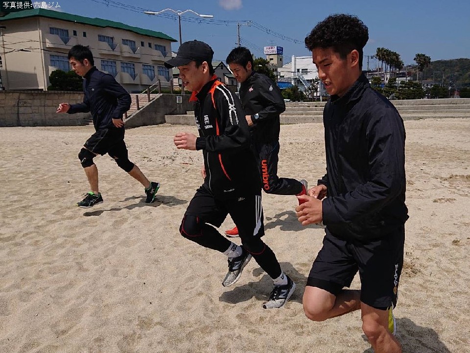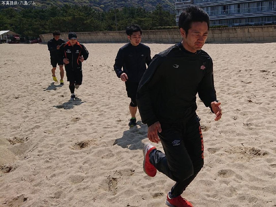 合宿に同行している六島ジムの代表を兼任している武市晃輔トレーナーは、「下半身強化とスタミナ強化、そして試合に向けて意識を高めることが主な目的です。午前は2時間砂浜をランニングとショートダッシュ。午後はサッカー場でのインターバル走800mを15本などを行います」とハードな練習内容を明かした。