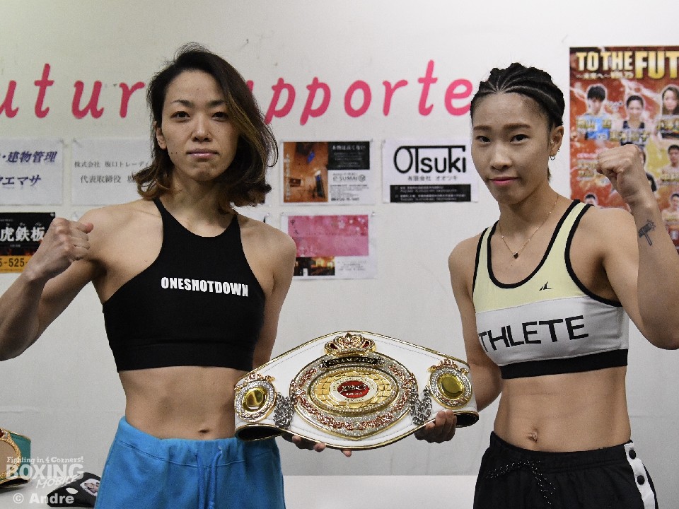 日本女子フライ級王座決定戦に出場する小澤瑤生(フュチュール)、東洋太平洋女子ライトフライ級王座決定戦に出場する緒方汐音(寝屋川石田)、そして女子ボクシング注目の一戦、アトム級8回戦で激突する元世界王者の池山直(フュチュール)と黒木優子(Yu KO)が13日、京都市内のフュチュールジムで前日計量に臨んだ。試合は明日14日、京都・KBSホールで行われる。