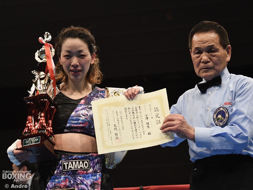 元東洋太平洋スーパーフライ級王者の小澤は、昨年新設された日本女子フライ級王座決定戦で韓国王者のパク・ヘスと激突。開始から左を的確に当てる小澤がペースを握ると、1ラウンドにダウンを奪い勢いに乗った。対して、パクもジャブから踏み込んで右を狙ったが距離が合わず。終始、小澤が先手を奪い試合巧者ぶりを発揮し判定で戴冠に成功した。