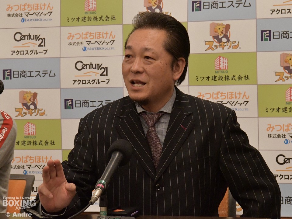 会見で山下正人真正ジム会長は「5月19日の小西伶弥の世界戦に続いて5月26日、久保の世界戦が決まりました。前回の防衛戦で実は減量がきつく、試合中に足がつったりしていました。階級を上げて、ベストな状態で、試合に臨めると思います。勝ちにこだわった試合をして、今後は小西とダブルで世界戦をしたいと思います」と意気込んだ。