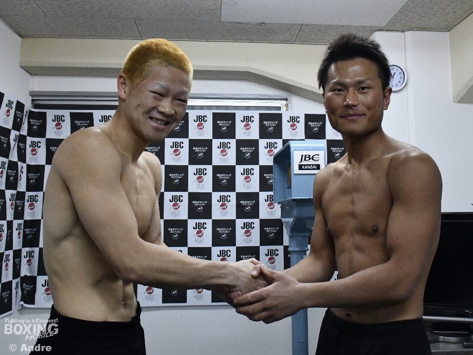 日本ウェルター級王者の矢田良太(グリーンツダ)と指名挑戦者の永野祐樹(帝拳)が20日、大阪市内の日本ボクシングコミッション関西事務局で前日計量に臨んだ。両者は明日、エディオンアリーナ大阪(大阪府立体育会館・第2競技場)で開催される「CRASH BOXING17」のメインイベントで拳を交える。3度目の防衛戦を迎えた矢田は「もちろん KOで勝つ」と意気込んだ。