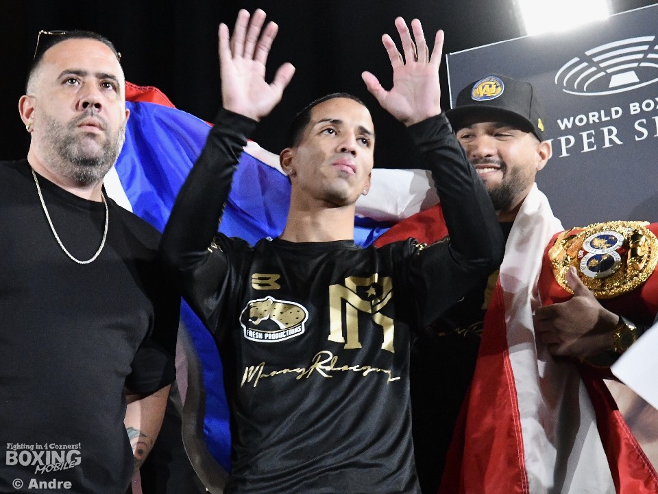 先に秤に乗ったロドリゲスは53.4kgの100gアンダーでパスすると「この試合に向けて50ラウンドから60ラウンドのスパーリングで調整してきた。明日はしっかり勝ってIBFチャンピオンのまま母国に帰ります」と笑顔で支援者に手を振る余裕を見せた。