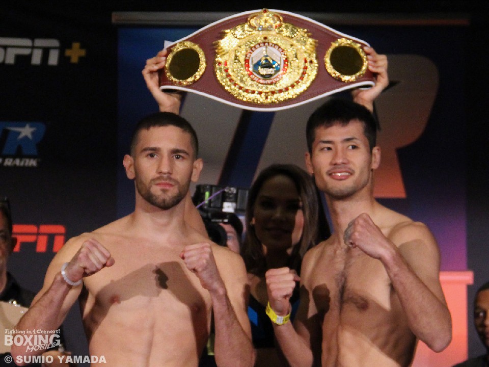 WBO(世界ボクシング機構)スーパーフェザー級王者の伊藤雅雪(横浜光)と同級9位のジャメル・ヘリング(米)が日本時間25日に前日計量を行い、伊藤はリミットを200g下回る58.7kg、サウスポー挑戦者は58.8kgで一発パスした。明日26日に米国フロリダ州キシミーで2度目の防衛戦に臨む伊藤は、「仕上がりに問題はない。挑戦者は良い選手だが、自分を信じて明日はKOを狙いに行く」とコメントした。