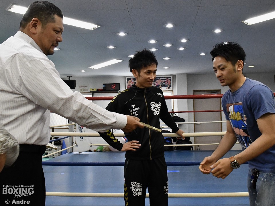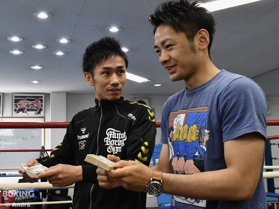 同じく報奨金を受け取った武市トレーナーは「俺までもらえると思わなかったので、驚きました。ボクシングを長年やっていますが、これだけの金額を稼いだのは初めてです。ホンマにうれしいですね」と喜びのコメント。「負けて当たり前だったので、思い切って大改造して臨みました。ほぼ、想定通りの展開になったので作戦勝ちですね」と語り、「自分が相手ならサウスポーでガツガツくる方が嫌だったので、そうしました。寝ずに考えました」と作戦勝ちに胸を張った。