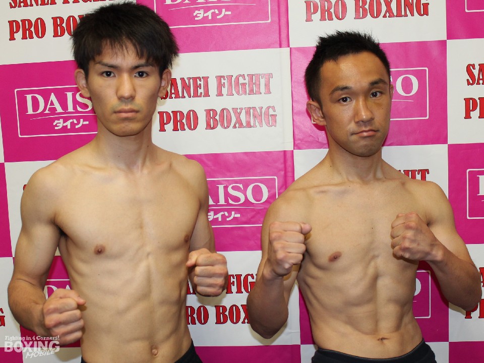 セミファイナルではフライ級8回戦でWBOアジアパシフィック・ライトフライ級12位の井上太陽(26=広島三栄)と小久保聡(35=三迫)が激突する。400gアンダーの50.4kgでパスした井上は、「相手はもっと身長が高いと思っていた。懐に入られないように戦いたい」とコメント。明日は100人の応援団を背に地元の期待に応える。