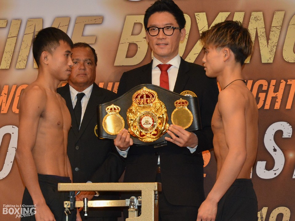 2階級制覇王者で現WBA(世界ボクシング協会)ライトフライ級スーパー王者の京口紘人(25=ワタナベ)と挑戦者で同級10位タナワット・ナコーン(26=タイ)の世界戦前日計量が18日、東京ドームホテルで行われ、チャンピオンがリミットの48.9kgを100g下回る48.8kg、挑戦者が200gアンダーの48.7kgで一発クリアした。