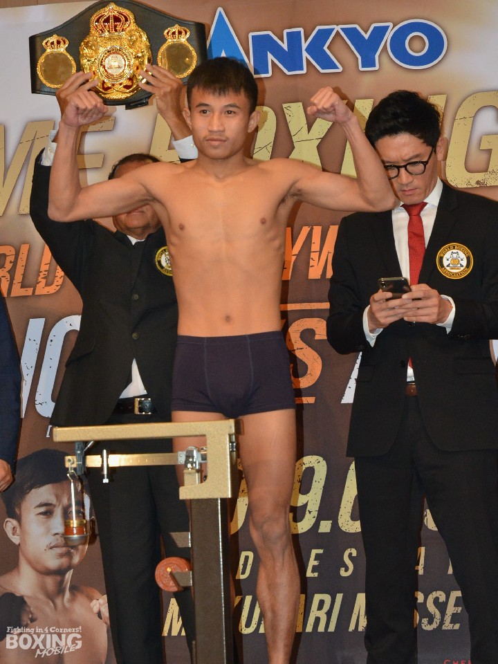 計量後のフェイスオフでタナワットに厳しい目を向けた京口は、囲み取材では機嫌よく「やっと終わった。気負ないなくリラックスできている。早くリングに上がりたい」とコメント。この後はパスタ、夜はサムゲタンを食べてリカバリーすると話した。続けて初防衛戦の意気込みを聞かれ、「こんな相手につまずくようじゃダメ。4ラウンドまでに捕まえて絶対に倒す。断言する。ファンが面白い試合をすること、そこに尽きる」と堂々KO防衛を宣言した。