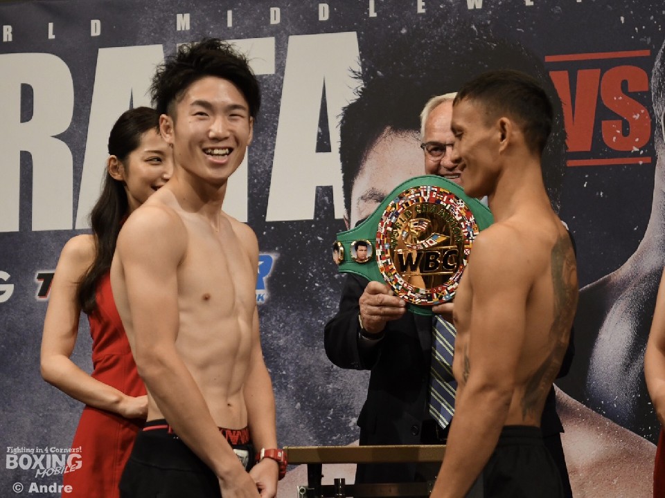 関西での世界戦はこれが初めての拳四朗は、「今回は減量もとてもうまくいった。最後の2日間は練習せずに計量に臨めたので体調が良いですね」と笑顔を見せると、「明日はパンチを避けて当てていき相手のメンタルを削っていきたい。テレビに長く映りたいので8ラウンドくらいに倒したい」とノックアウトを宣言した。