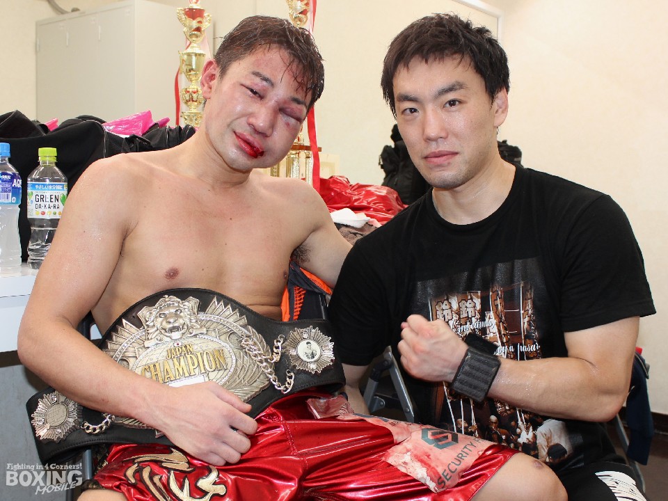 悲願のベルトを巻いた鈴木だが、ダメージが深く会見は行われず。鈴木を担当する加藤健太トレーナーは、「1〜2ラウンドの展開が続けば良いと思っていたが、打ち合いに巻き込まれてしまった。ただ、あそこまで打ち合えるとは思っていなかった。6ラウンドから右フックを引っかけるように指示を出したら距離を作ることができた。根性を出してよくやってくれた」と新チャンピオンを称えた。