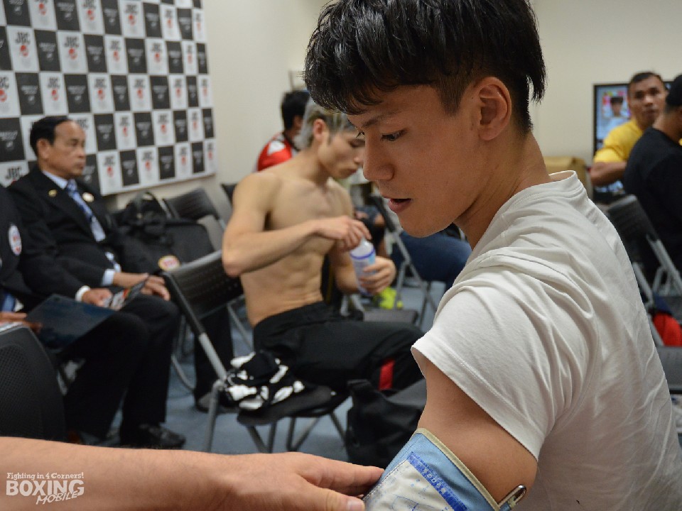 一方、3度目の来日となるコムサンは、慎重に秤に上がると500gアンダーの69.3kgを計測。これまで日本同級王者の松永宏信(横浜光)、世界挑戦経験者の近藤明広(一力)と戦ったこともあるベテランは、「このチャンスに勝利して上を目指す。井上は右のオーバーハンドが強いと聞いているが、ハートの強さは自分の方が上。俺を甘く見ない方がいい」と気を吐いた。