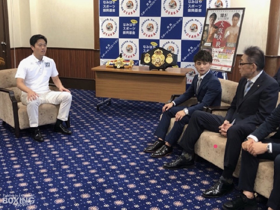 WBA世界ライトフライ級スーパー王者の京口紘人(ワタナベ)が8日、地元大阪府の吉村洋文知事を表敬訪問し、次戦の防衛戦の詳細を報告した。京口は10月1日(火)、大阪市内のエディオンアリーナ大阪(大阪府立体育会館・第1競技場)で同級1位の久田哲也(ハラダ)と2度目の防衛戦に臨む。