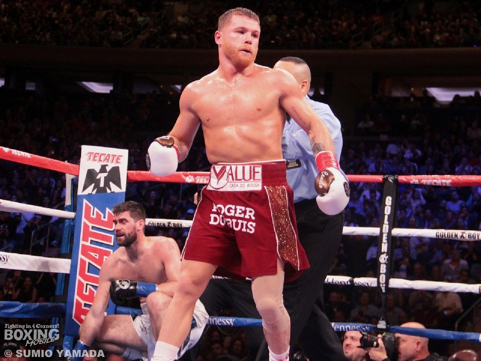 WBA(世界ボクシング協会)スーパー、WBC(世界ボクシング評議会)フランチャイズ・ミドル級王者のアルバレスは、昨年12月にロッキー・フィールディング(英)の持つWBA世界スーパーミドル級タイトルに挑戦すると、3回TKO勝ちで3階級制覇達成。今年はミドル級に戻り、ダニエル・ジェイコブス(米)の持つIBF(国際ボクシング連盟)同級王座と、自身のタイトルをかけた3冠王座統一戦を決行。アルバレスが3-0の判定で3つのベルトを統一した。