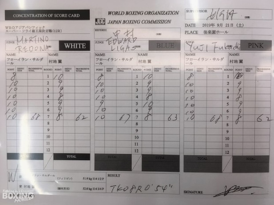 サルダールの右によく反応した村地は相撃ちの右で先制のダウンを奪った。しかし、キャリアで勝るサルダールは3回に強烈な右ストレート、左フックで顔を弾きペースを手繰り寄せると、4回に左フックを振り抜きダウンを奪い返した。守勢を強いられた村地だが、5回にプレスをかけてスタミナの落ちたサルダールに左ボディを好打。だが試合巧者のサルダールは相手の攻撃を上手く捌き有効打を決めると7回終了間際、右の相撃ちで2度目のダウンを奪った。村地はフラフラになりながらも立ち上がりゴングに救われたが、次の回に右ストレートを浴びてキャンバスに沈んだ。