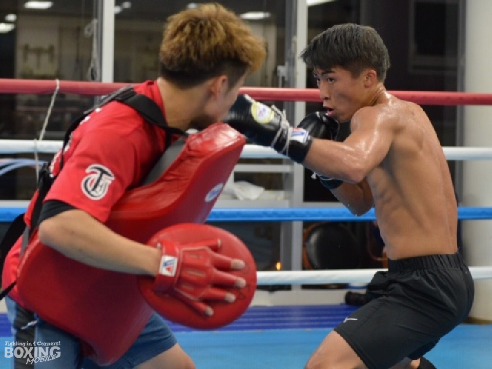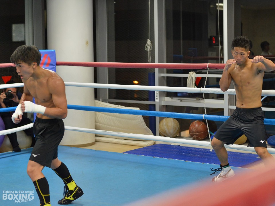 ドネアの左フックを想定し太田トレーナーが左フックを飛ばす。それをガードを固めてガッチリとブロックし「ビュン!」と伸びるワンツーを打ち込んだ。さらにバックステップしてからの右ショートを上下に打ち分け、右ショートアッパーを突き刺した。井上は打ったら常にポジションを変えることも忘れず、ありとあらゆる場面を想定していた。