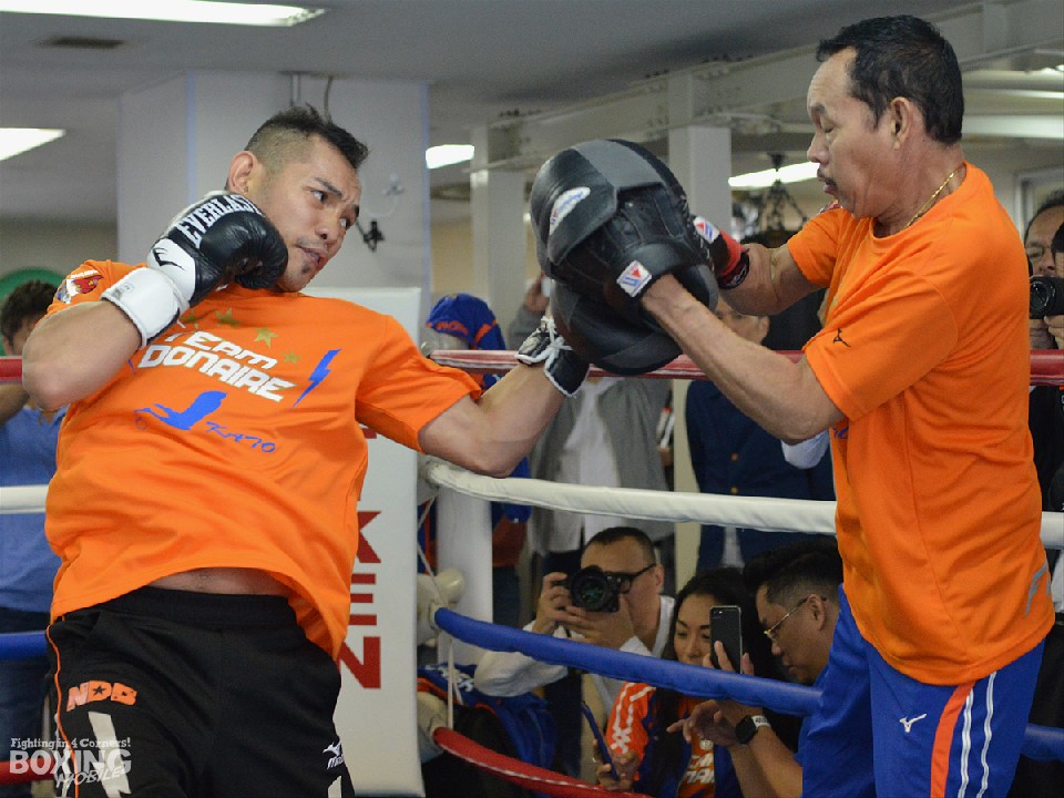 同じく大橋秀行会長は、「腹をくくってきていて"侍"の雰囲気を感じた。やはり左フック、左アッパーが強烈。年齢を重ねるとパワーもスピードも落ちるが、経験を積みカウンターのタイミングの精度が上がってくるのでそこが怖い。顔つきも良くてコンディションも仕上げてきている。絶好調なのは間違いない」とドネアの仕上がりに警戒の色を強めると、「一番パンチに体重が乗る距離が同じなのでスリリングな戦いになる。判定はないのではないか」とKO決着を予想した。