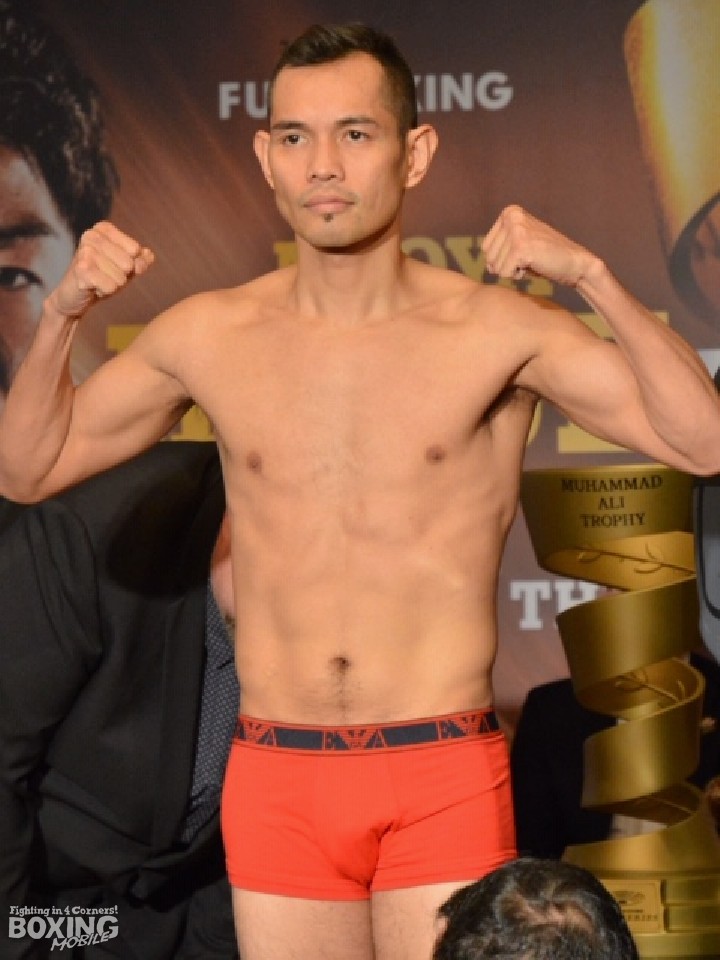 計量後にはサラダとフルーツを口にしたドネアは、これから大好物のラーメンを食べて体力を回復させる。明日は体重を10〜12ポンド(約4.5kg〜5.4kg)戻して戦うことを明かし、「自分の経験を活かして引き出しを使う」と秘策は用意せず向かい合って対応すると語った。