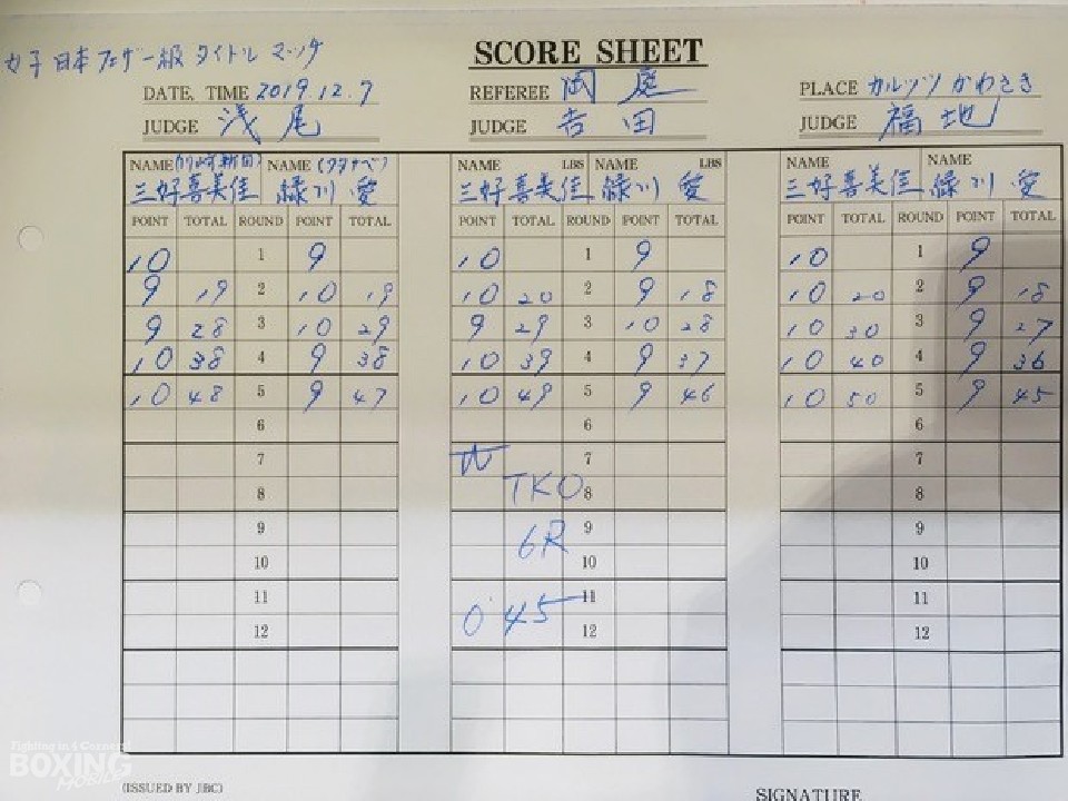 日本女子フェザー級王者の三好喜美佳(35=川崎新田)が7日、神奈川・カルッツかわさきで開催された「ホープフルファイト.32」のセミファイナルで同級4位の緑川愛(35=ワタナベ)を迎えて初防衛戦に臨んだ。OPBF王座3階級制覇し、2度の世界戦を経験しているベテラン三好がベルトを守ったのか。それともタイトル初挑戦の緑川が下克上を果たしたのか――。