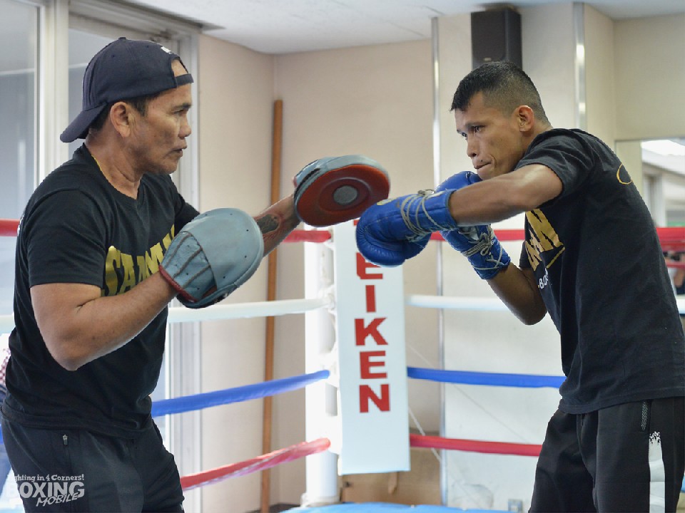 練習はシャドーに始まり、ミット打ち、サンドバッグを各2ラウンドと短いものだったが、自信があるという右ジャブは的確かつ鋭く、偵察に訪れた拳四朗の父・寺地永会長も「アルバラード戦でもそうだったが、スピードがあり前半は要注意」と警戒。その上で「後半に入ると落ちてくるのでそこを叩きたい。距離も難しくはないのでカウンターを合わせられる。油断しなければ倒せる」と自信を深めた。