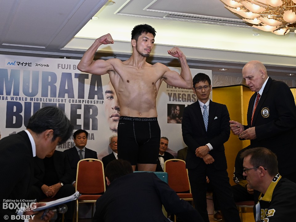 計量を終えた村田は囲み取材に応じ、「フェイスオフで向かい合ったが特に何も感じなかった。今回で世界戦は6回目だが、毎回当然のように緊張する。ベルトを守る意識はなくて、明日の試合でベストを尽くすだけ。リングに上がる瞬間に自然とスイッチが入ると思う」と決意のコメント。「これからパスタを食べて夜は鰻を食べてリカバリーに努める」と話し、明日に備えた。