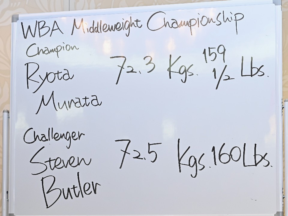 その後、WBA関係者と両陣営でルールミーティングが行われ、村田がエバーラスト社の黒のグローブ、バトラーがライバル社の白のグローブを使用することが決まった。