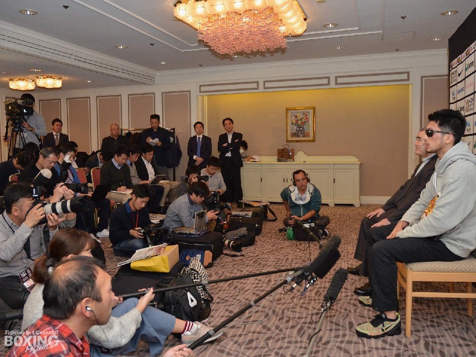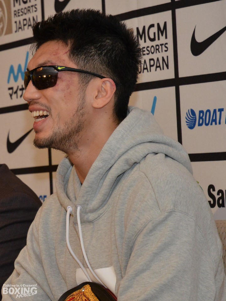 「サングラス姿なのは失礼なのは分かっているけど、腫れた姿を見せたくない」と会見場に現れた村田。試合映像はKOシーンだけ見たと言うと「実はブラント戦より緊張していた。前回の試合を評価されてまた、良い試合を見せたいと重圧があった。勝ててホッとしている」と自らの出来に及第点を与えた。
