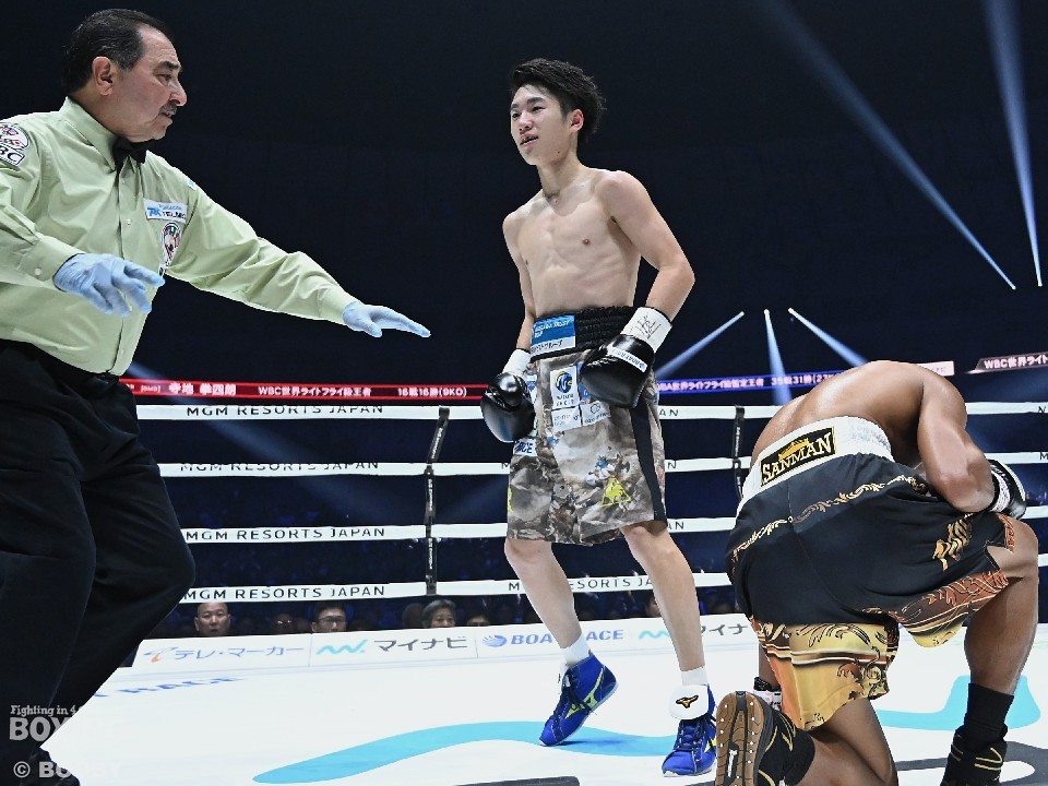 それでも映像を見直し、「ちょくちょくパンチをもらっていたので、もっと足を使って避けられたら良かった。理想はまだ遠い」と反省したが、「3ラウンドに入り、セコンドのゴーサインが出たので仕留めに掛かったら、ボディが効いたのでそこを狙った。右から左のボディは得意にしている」としたり顔。父の寺地永会長も「2ラウンドに危ないシーンもあったが、結果的に倒せたので言うことはない」と息子の勝利を手放しで喜んだ。