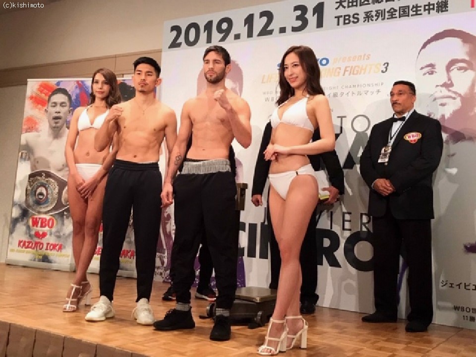 令和元年を締めくくる大晦日のメインイベントはWBO(世界ボクシング機構)世界スーパーフライ級チャンピオン井岡一翔(30=Reason大貴)の防衛戦。チャレンジャーにランキング1位のジェイビエール・シントロン(24=プエルトリコ)を迎える。この階級は、2020年にWBSS(ワールドボクシングスーパーシリーズ)の開催も噂される注目の軽量級ウェイト。シントロンは12戦11勝(5KO)1無効試合と無敗を誇る最強挑戦者。江藤光喜(31=白井・具志堅)と2度対戦した経験を持つ。初戦は江藤のバッティングが理由で無効試合になったが、2度目の対戦となった今年8月の米国フロリダでは左ストレートでダウンを奪って大差判定勝利を収め、大晦日の世界挑戦権を獲得してきたサウスポー。井岡は「苦手じゃない」と話しているが、サウスポーと対戦するのは6年7ヶ月ぶり。昨日の予備検診では、身長差は5cmで、リーチ差は12cmだった。8回目の大晦日戦だが、いつもとは違う距離感をどう対処するかが試合を左右するのは間違いない。世界戦の前日計量が30日、都内の品川プリンスホテルタワーで行われた。チャンピオンの井岡がリミットの52.1kgで計量を一発クリアすると挑戦者のシントロンは100グラムアンダーの52.0kgで計量台を降りた。