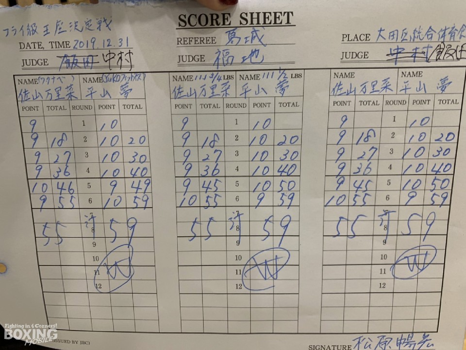 日本女子フライ級王座決定戦が大晦日に大田区総合体育館で開催された「LIFE TIME BOXING FIGHTS.3」で行われ、同級1位の佐山万里菜(32=ワタナベ)と同級2位の平山夢(19=YuKO)が王座を争った。