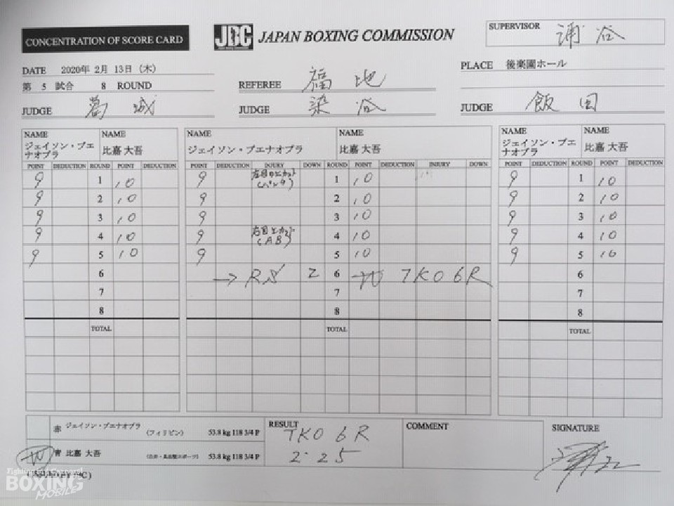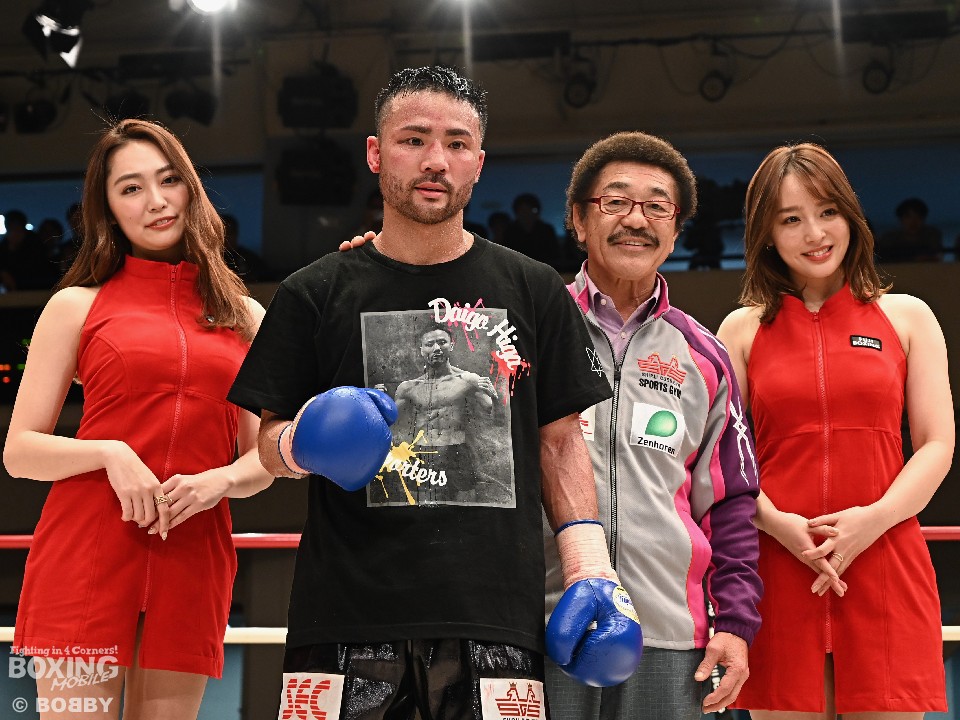 やはり比嘉にはリングが似合う。超満員2005人の観客が見守る中、1年10ヶ月ぶりのリングの感触を確かめるように相手のパンチをかわすと左ボディーから回転を生かした連打で攻勢。距離を取るサウスポーのブエナオブラを追いかけるとパンチをまとめて倒しにかかった。試合が決まったのは6ラウンド。右ボディーアッパーでダウンを奪うと最後も右ボディーでキャンバスに沈めた。