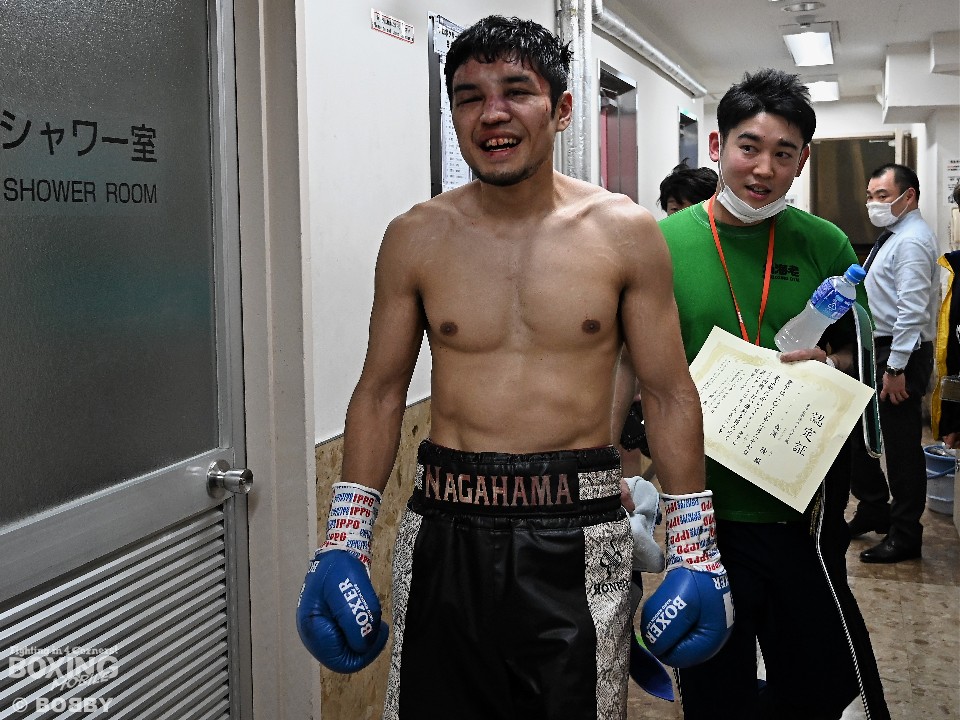 コンビを組む石原雄太トレーナーは「ジャブでプレスをかけていく作戦が功を奏した。5ラウンドに相手のパンチが効いたが、体を密着させてのボディ打ちがよく当たった」と長濱を褒め称えた。