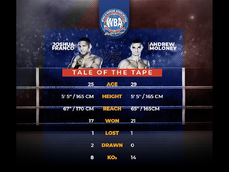 ラバーマッチが濃厚となりそうな両者の戦績はフランコが20戦17勝(8KO)1敗2分1無効試合。モロニーが22戦21勝(14KO)1敗1無効試合となった。