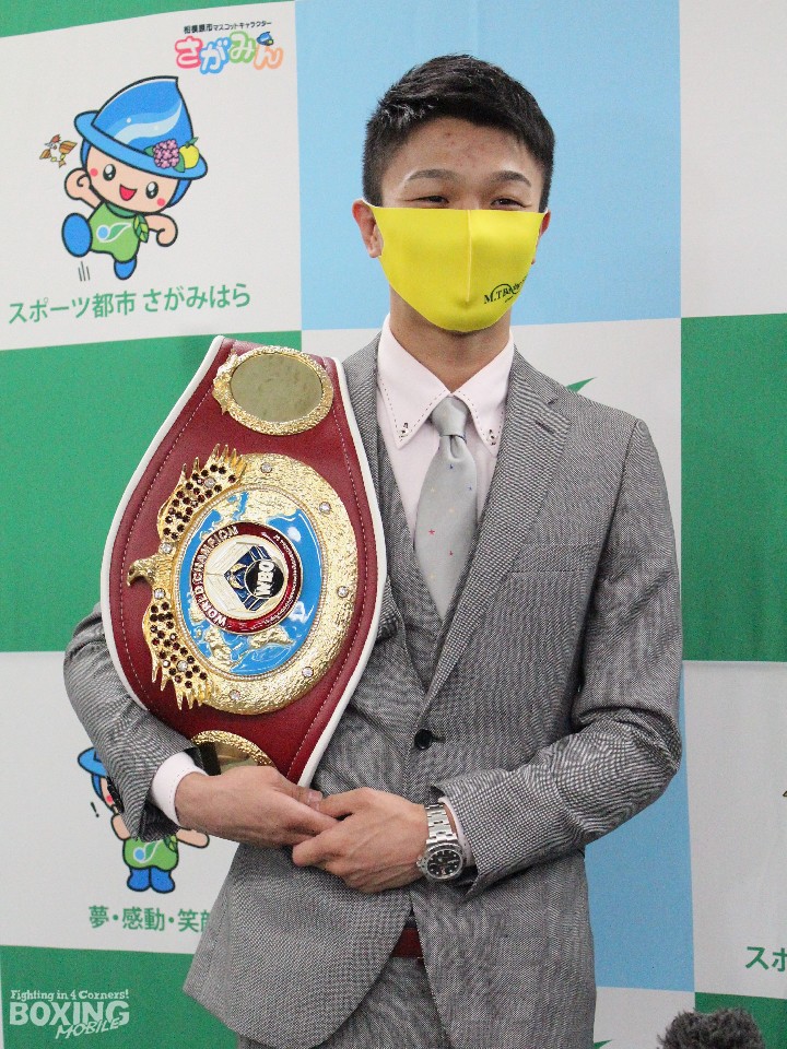 WBO(世界ボクシング機構)フライ級王者の中谷潤人(22=M・T)が20日、神奈川県相模原市役所を表敬訪問し、本村賢太郎市長に世界王座獲得を報告した。