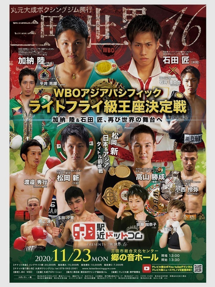 試合は23日(月・祝)、三田市総合文化センター郷の音ホールで開催される「駅近ドットコムpresents三田から世界へ.16」(第2部、午後4時30分開始)のメインイベントで行われる。