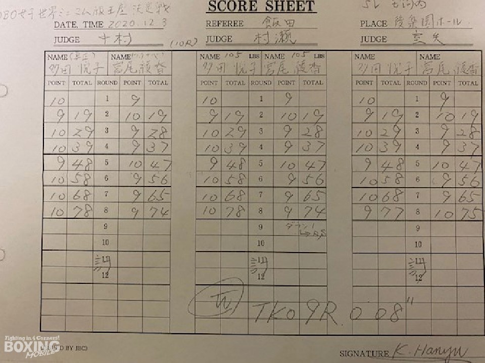 WBO(世界ボクシング機構)女子世界ミニマム級王座決定戦が3日、後楽園ホールで開催された「DANGAN237」のセミファイナルで行われ、元WBA(世界ボクシング協会)女子アトム級王者の宮尾綾香(37=ワタナベ)と元3団体女子世界ミニマム級王者の多田悦子(39=真正)が対戦した。