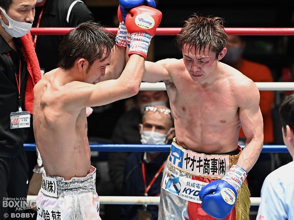 試合後にリング上で勝者の手を挙げた。「僕が初めてタイトルを獲った時、拳を交えた石本さん(石本康隆(帝拳→引退)がその場で『おめでとう』と言ってくれた。だから自分も自然と古橋選手の手を挙げて『おめでとう。強かったです』と言っていた」。