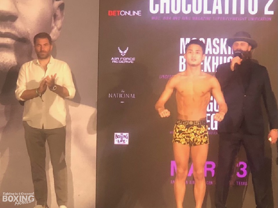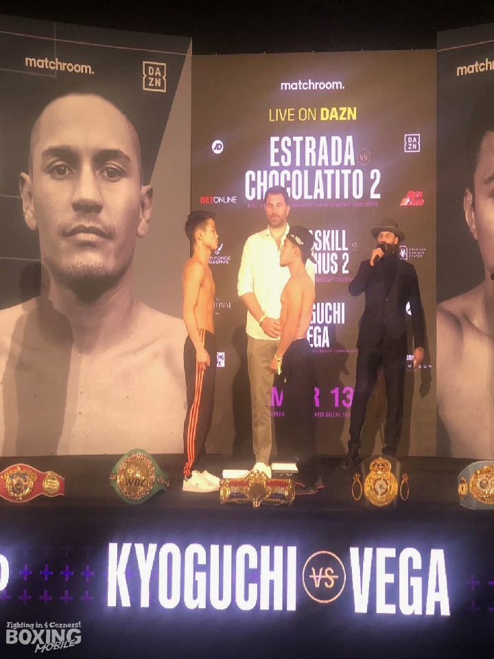 WBA世界ライトフライ級スーパーチャンピオンで米国デビュー戦を迎える京口紘人(27=ワタナベ)と挑戦者でランキング10位のアクセル・アラルゴン・ベガ(20=メキシコ)が日本時間13日、前日計量を終えた。京口は107.6lb(48.8kg)でベガは107.2lb(48.6kg)だった。ポンド(lb)表記では108lbがリミット。